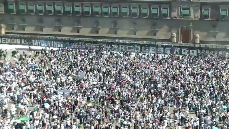 Cuando la marcha llegó al Zócalo, un grupo de como un centenar de jóvenes comenzaron a lanzar objetos por encima de las vallas que protegían el Palacio Nacional. La gente se dispersó en las entradas por el gas pimienta con el que respondió la policía. Los jóvenes encapuchados llegaron a romper algunas vallas y lanzaron petardos mientras los manifestantes vestidos de blanco observaban a la distancia.